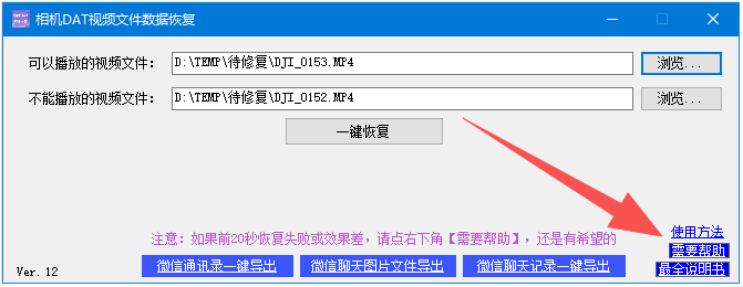 如果使用本文章的软件修复不好,可以点击软件右下角的【需要帮助】,可以联系到人工修复,人工参与的修复成功率高。