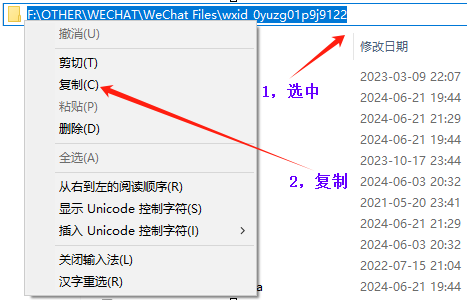 十五、第二个格子选择聊天记录导出后保存的文件夹,下面是一个参考的选择案例,注意第一个格子的选择,可以选择到Msg文件夹,也可以不用那么精确,只选择到上图的那个文件夹就行