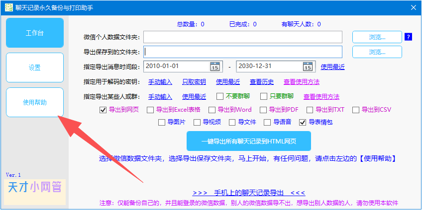 这里要用到的软件是【聊天记录永久备份与打印助手】,本文上面的软件下载链接可以下载。