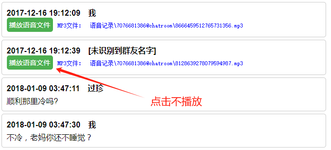 十八,因为选择了导出语音,所以会有语音记录文件夹,内部是MP3的语音文件,本案例选择的是导出到网页,只要把这3个文件夹放在一起,不管在哪台电脑上,都是可以打开的,并且备份出来的聊天记录,语音和视频都是可以播放的。