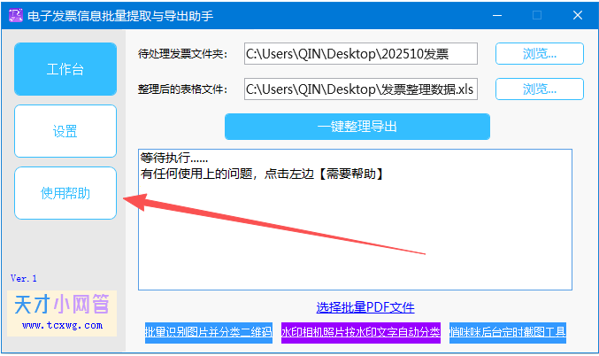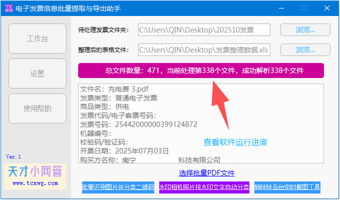12,到这里就是软件的主要功能的,目前(20251129)只支持PDF类型的电子发票,OFD的和XML的,后续估计会考虑支持,如果使用软件过程中遇到任何的问题,都可以点软件左边的【使用帮助】,联系软件作者寻求帮助,可以解决问题。