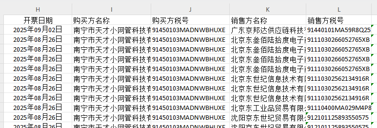 9,表格中可以看到很多发票的内容