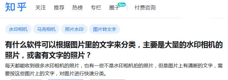 先看知乎上的问题,这样的问题很多办公室工作的人会遇到,有些岗位,需要每天接收很多水印照片,或者有文字的照片,并且需要分类保存好。