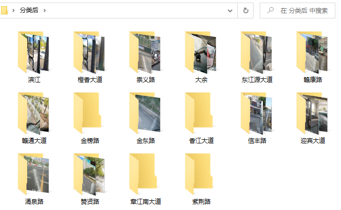 在分类后的文件夹中,可以看到分类好的图片,每个关键字都会分出来一个文件夹,符合条件的图片会放进这个文件夹中