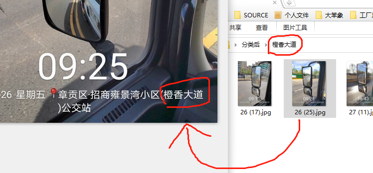 图片中的水印大概如下,并且需要按外勤的工作区域来分类,只要文字是清晰的,都可以使用本文的方法