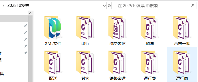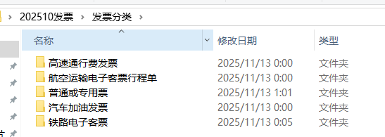 文件分类:如果你开启了分类功能,在原发票文件夹旁会生成一个 【发票分类】 的文件夹,里面按类型分好了子文件夹。