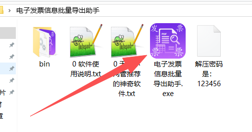 解压后,你将看到如下文件,其中 电子发票信息批量导出助手.exe 文件就是主程序。