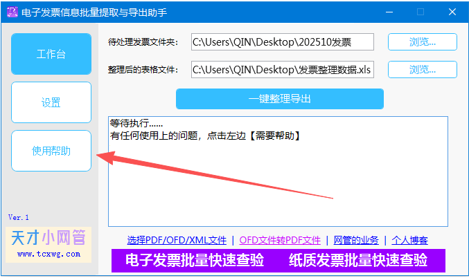 软件提供了直接的帮助通道,只需点击软件主界面左侧的 【使用帮助】 按钮,即可联系到软件作者 【天才小网管】,获取技术支持或反馈问题,通常会根据你提供的发票样本进行兼容性更新。