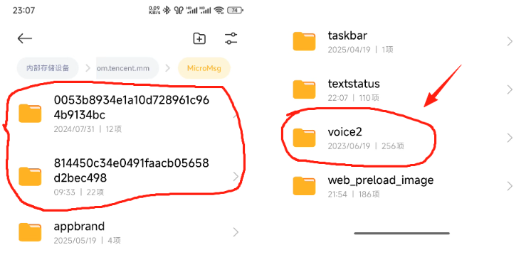 安卓手机的情况略有不同。2022年12月之前的语音文件可以直接导出,之后的部分可能无法导出。以下是详细步骤: